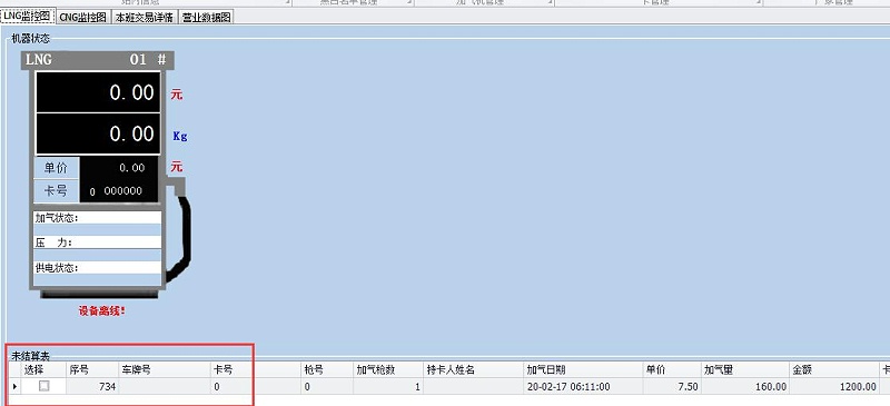 LNG和CNG實(shí)時(shí)記錄是分開顯示的,CNG默認(rèn)不需要后臺(tái)結(jié)算,LNG因?yàn)榘喾N支付方式,所以每筆員工卡的加氣記錄需要后臺(tái)進(jìn)行結(jié)算:
